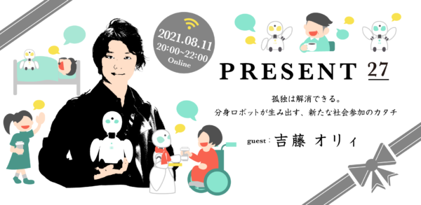 【オンライン開催!】PRESENT27 吉藤オリィ 孤独は解消できる。分身ロボットが生み出す、新たな社会参加のカタチ