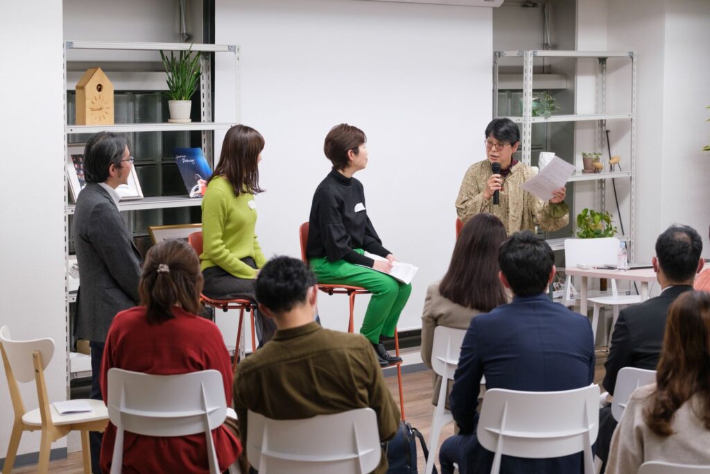 第3部は成蹊大学 文学部現代社会科学教授である渡邉大輔さんをコーディネーターに、登壇者とKAIGO LEADERS発起人の秋本、そして参加者を交えてのクロストークが行われました。