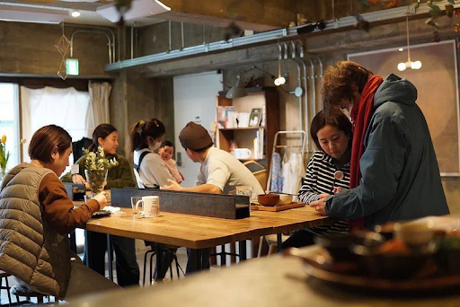 そんな経験を通して、臨床だけではなく違う道もたくさんあるなと気がつき、ヘルスケア企業でのメディア運営や、ロボットベンチャー企業でのユニバーサルロボットの開発・営業等に携わりました。現在は、宿泊施設とカフェを運営している京都市のデザイン会社で働いています。カフェの一角をつかって、小さな赤ちゃんがいるお母さんが、自分らしくいられるための場づくり等もしています。海外から訪れる人や高齢者等色んな方が集う場の企画・運営や、デザイン等、様々なことに携わってきました。